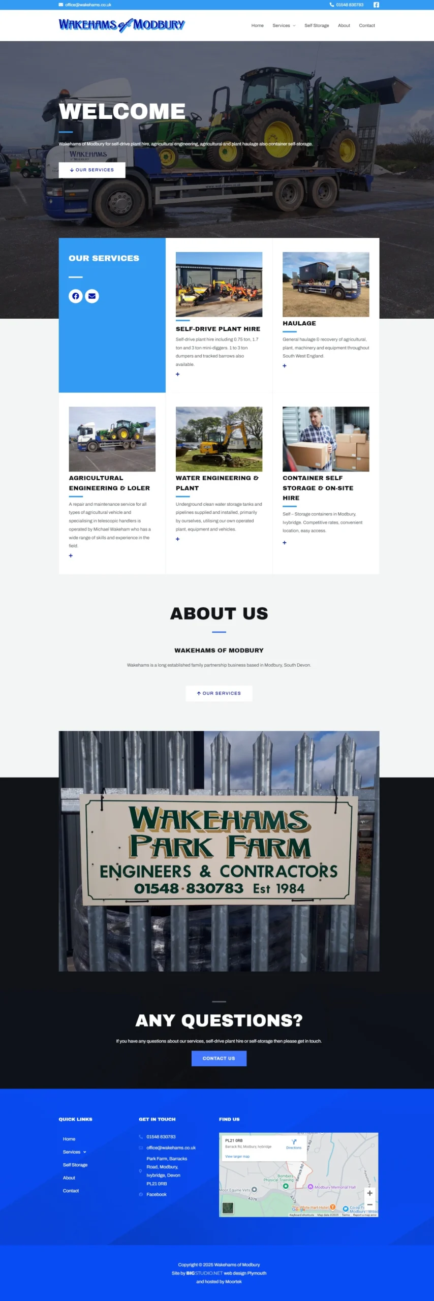 Wakehams of Modbury is a well-established family-run business offering plant hire, haulage, and container self-storage services. Based in Modbury, Devon—between Kingsbridge and Plymouth—Wakehams provides essential support to the construction and logistics industries across the region. Their reputation is built on reliability, efficiency, and high-quality service.
